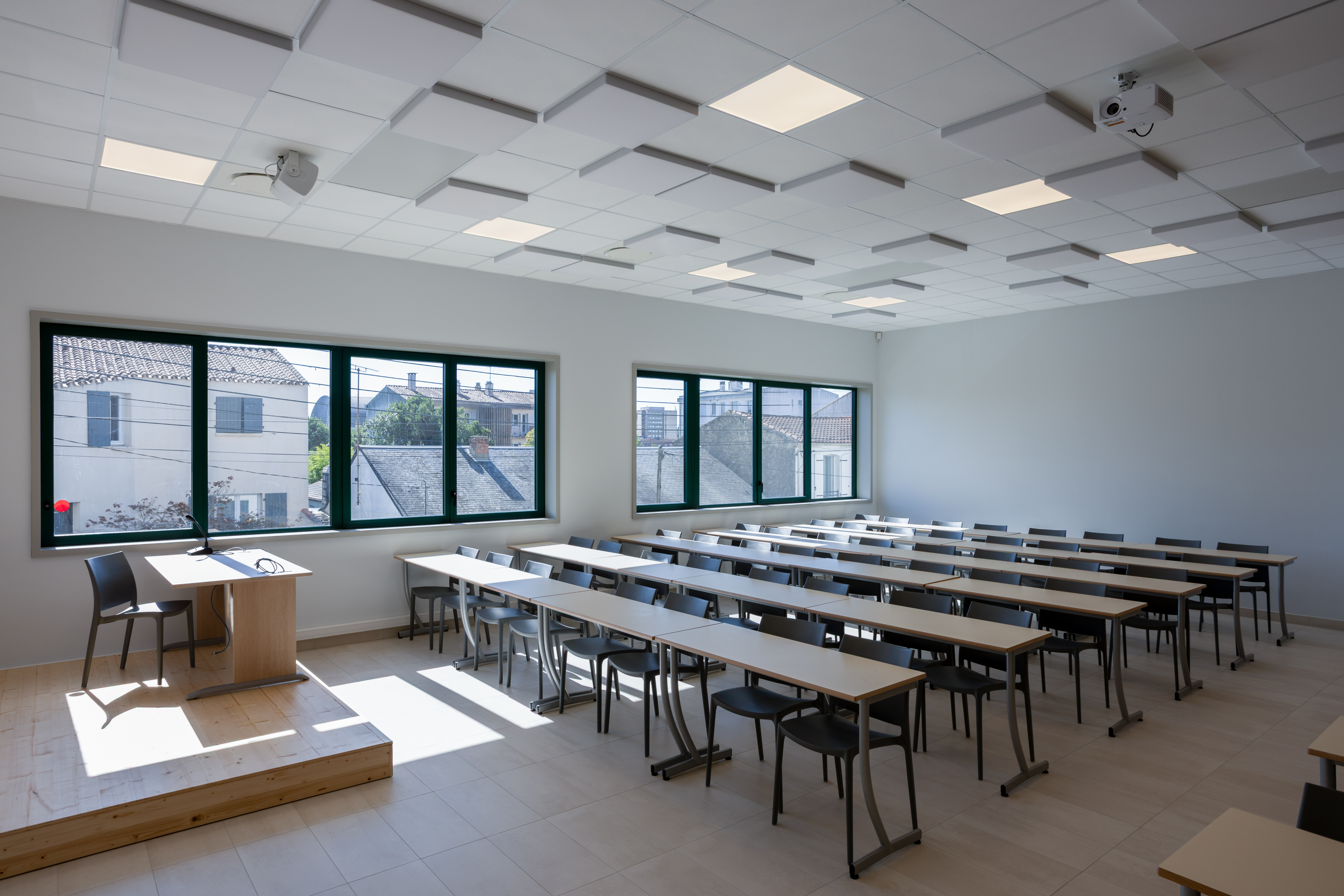 Les panneaux rayonnants de plafond sont particulièrement adaptés aux établissements scolaires. Ils assurent chauffage et rafraîchissement de manière homogène, silencieuse et sans brassage d’air, améliorant à la fois le confort thermique, acoustique et sanitaire.