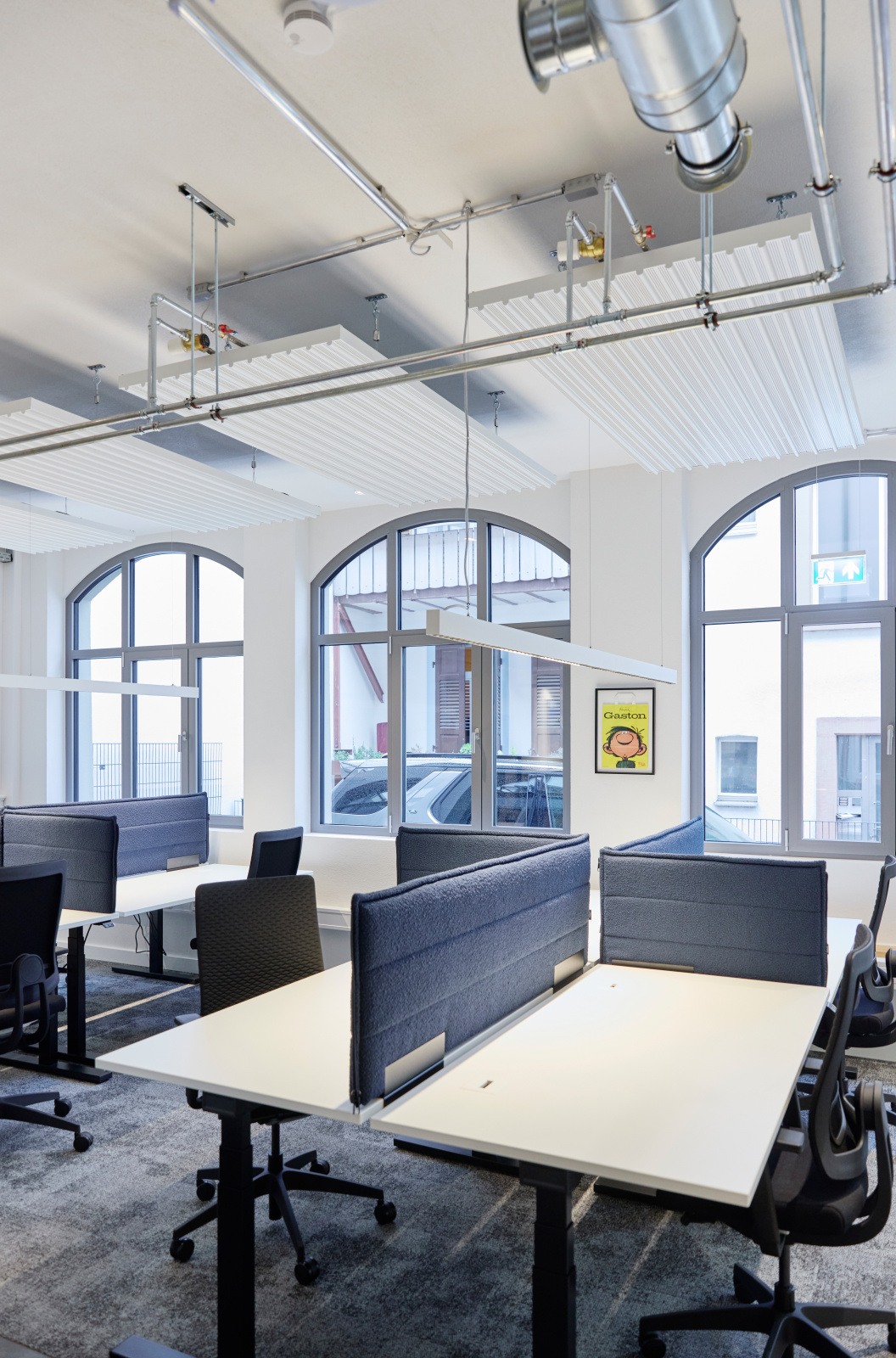 Liberté d’agencement : placés au plafond, ils libèrent les murs et sols, facilitant le cloisonnement modulaire et l’intégration d’autres équipements (éclairage, sprinklers, ventilation). Hors de portée, ils sont protégés des dégradations et sans danger pour les occupants.