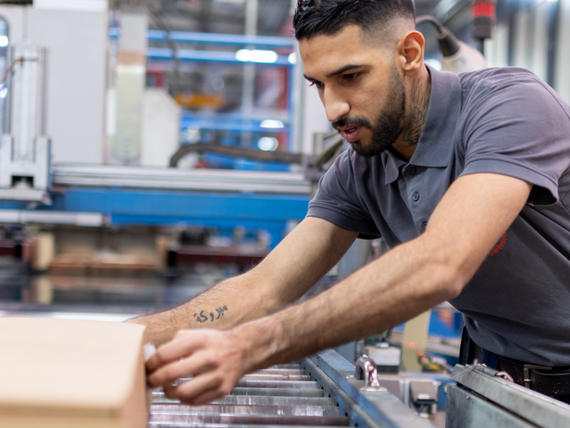 J’ai pris beaucoup de plaisir à suivre la formation de conducteur de machines. J’ai travaillé dur et je suis rapidement devenu conducteur de machines au niveau de la section emballage. J’ai ensuite suivi une formation continue. Je suis maintenant responsable de toute la ligne d’emballage et je dirige déjà une petite équipe. J’aime travailler ici, j’aime les défis et mon supérieur me confie beaucoup de responsabilités. Ce qui me plaît tout particulièrement, c’est le sentiment que j’éprouve quand tout fonctionne à nouveau impeccablement après une panne. Le dépannage s’avère parfois difficile, mais je me concentre sur le problème et je réfléchis à des solutions – même après le travail, à la maison. Si nous réussissons à résoudre le problème, je me sens vraiment heureux.