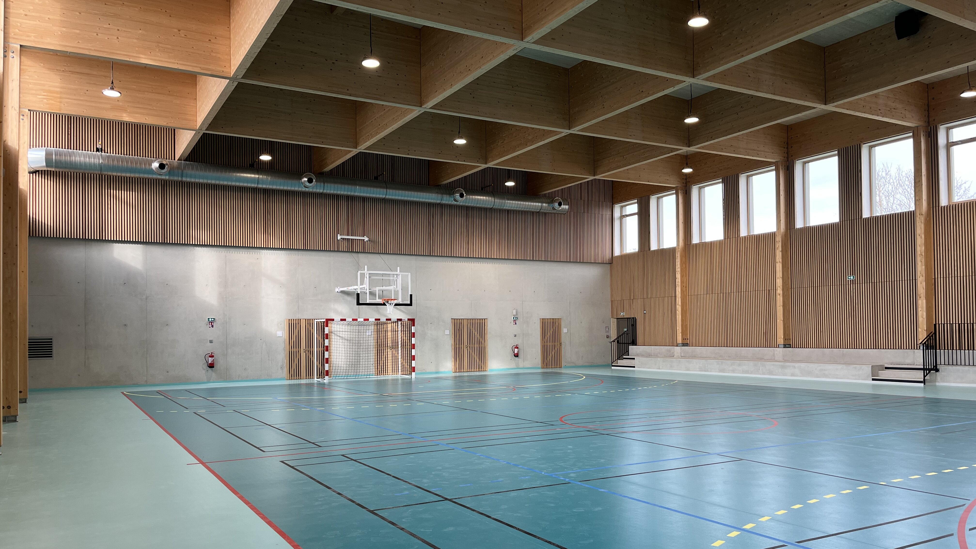 Associées à un automate connecté à la GTB, elles permettent un pilotage précis des débits et un suivi continu des performances, garantissant confort, qualité d’air et minimisation des besoins de chauffage dans ce gymnase passif exigeant.
