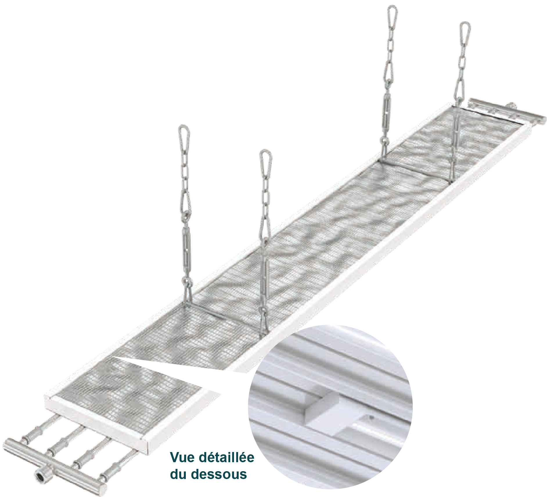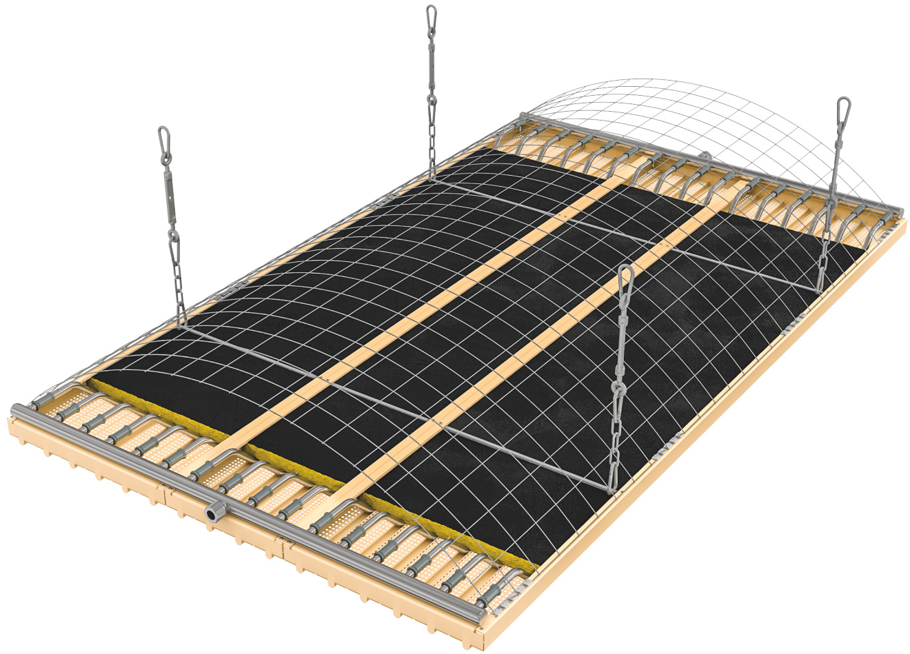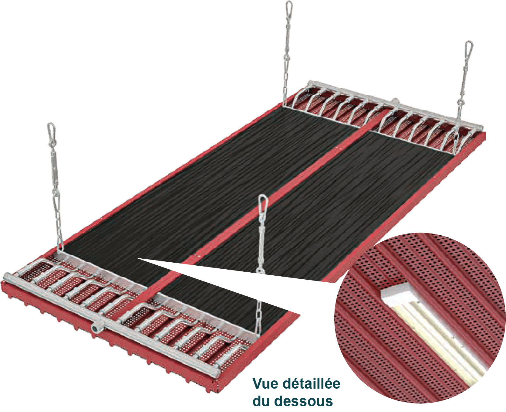 La grande stabilité des panneaux modulaires permet de limiter le nombre de points de suspension, ce qui réduit nettement le temps d’installation.