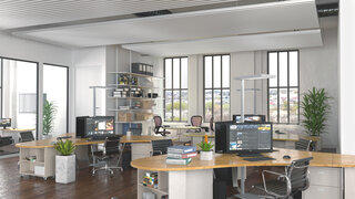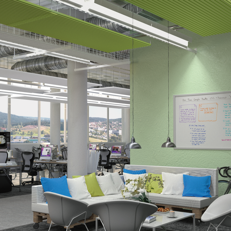 Au travail ou au restaurant, le niveau sonore est réduit grâce à l'absorption acoustique des panneaux en version perforée.