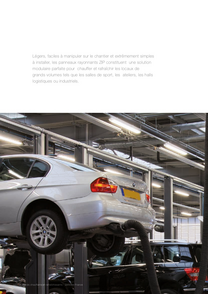 La distance entre les points de suspension est de 3 m maximum. Les axes de suspension permettent un montage incliné de 45° dans le sens de la longueur et de 30° dans le sens de la largeur. Des axes de suspension variables supplémentaires peuvent être utilisés si nécessaire, pour adapter les distances entre les points de suspension pendant le montage. D'autres solutions de suspension et fixation sont possibles: rails porteurs fixes ou mobiles, fixation par profils Z proches du plafond.