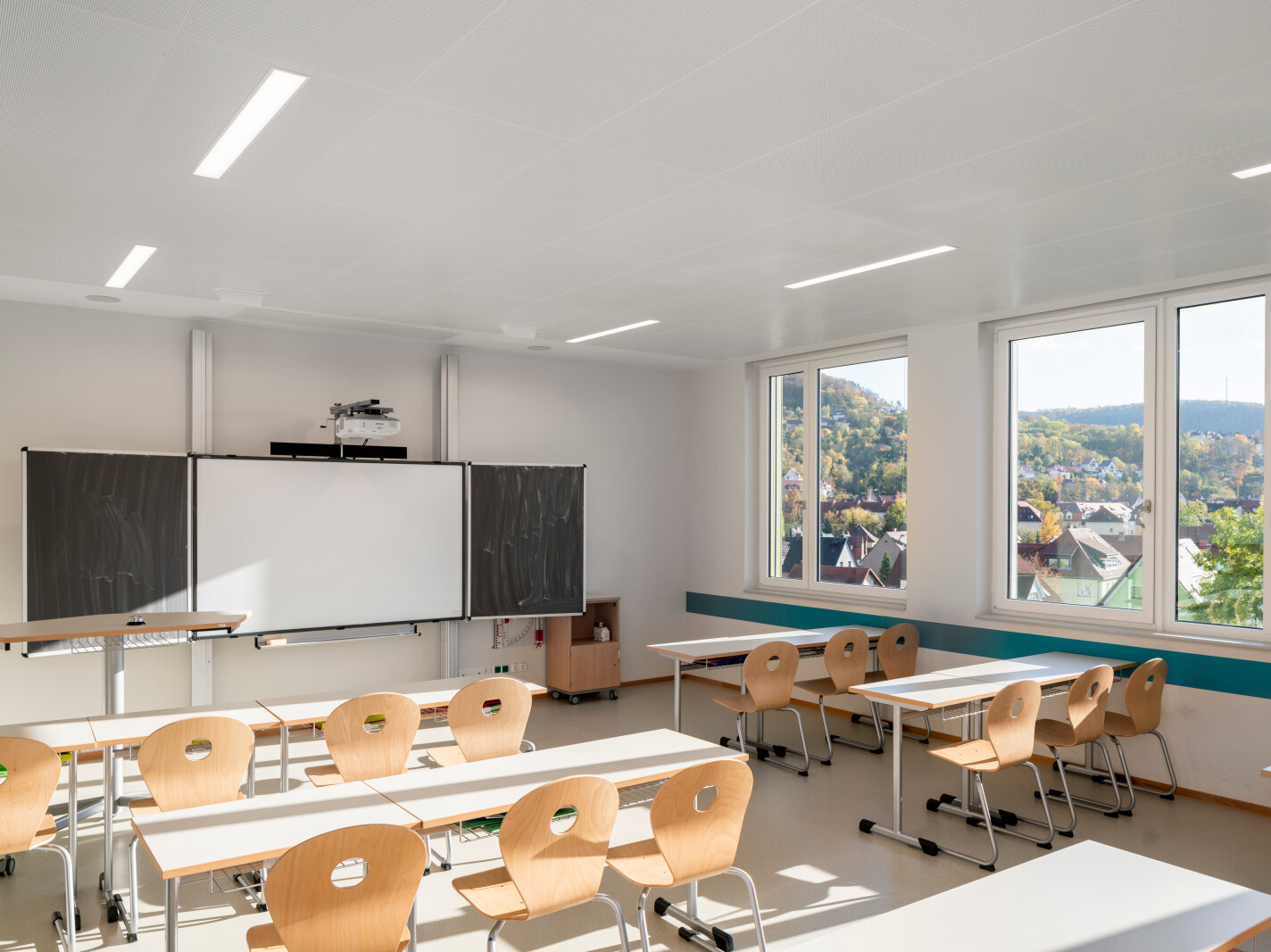 Pour les écoles par exemple, le fait d'installer les émetteurs au plafond apporte également de nouvelles solutions d'aménagement des espaces de travail. Les panneaux rayonnants de plafond permettent de réaliser des économies d'énergie et de faciliter la maintenance car ils sont sans entretien.