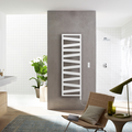 Comme une bande d’acier qui enveloppe le radiateur de salle de bains : Zehnder Ribbon convainc par son design moderne et son côté pratique. Ses montants décalés sont inspirés par les ouvrages architectoniques sur plusieurs niveaux. De larges découpes offrent un espace suffisant pour suspendre toutes les serviettes de la famille. Cette alliance entre forme et fonctionnalité fait de Zehnder Ribbon un radiateur ramenant confort et élégance dans la salle-de-bains. Ce modèle est livrable dans toutes les teintes et finitions du nuancier Zehnder.