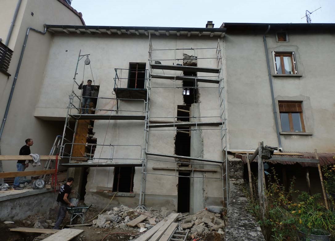 Elle s'est engagé dans une démarche de certification Enerphit (standart passif pour la rénovation). De lourds travaux d'extension (panneaux ossature bois), d'isolation (laine de verre, fibre de bois) et d'aménagement (ouverture de la façade) ont été conduits pour moderniser l'habitation et atteindre un besoin en chauffage de seulement 33 kWh /m par an.