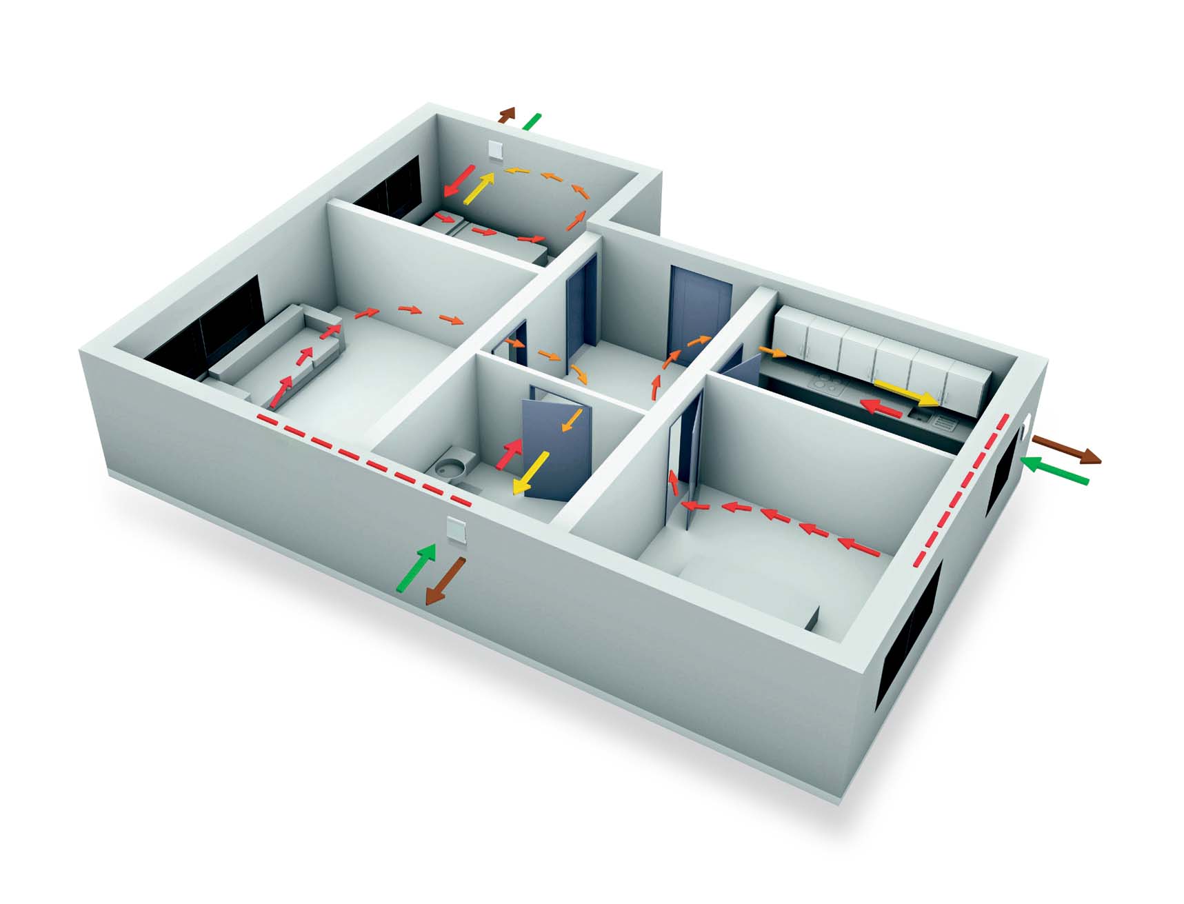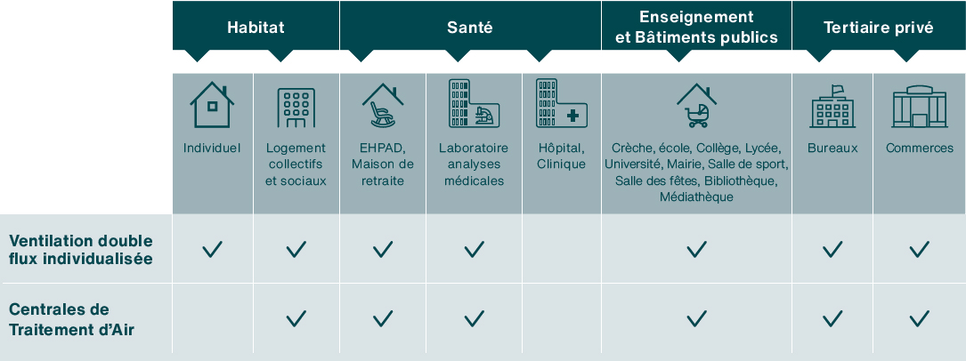 Dans ce cas, il s’agit souvent d’habitations à basse consommation présentant une étanchéité élevée à l’air et devant répondre à des prescriptions en matière de protection acoustique et de ventilation.